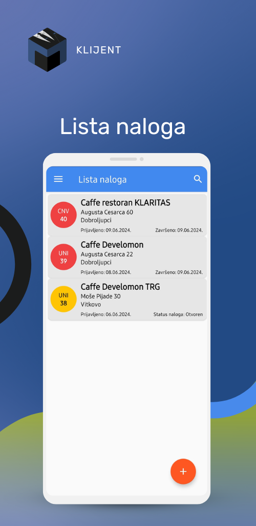 - Kreiranje naloga / prijava kvara - kreiranje naloga koji će sadržati sve potrebne informacije i biti vidljiv direktno tehničaru bez potrebe za dodatnom akcijom za definisanja parametara naloga.
