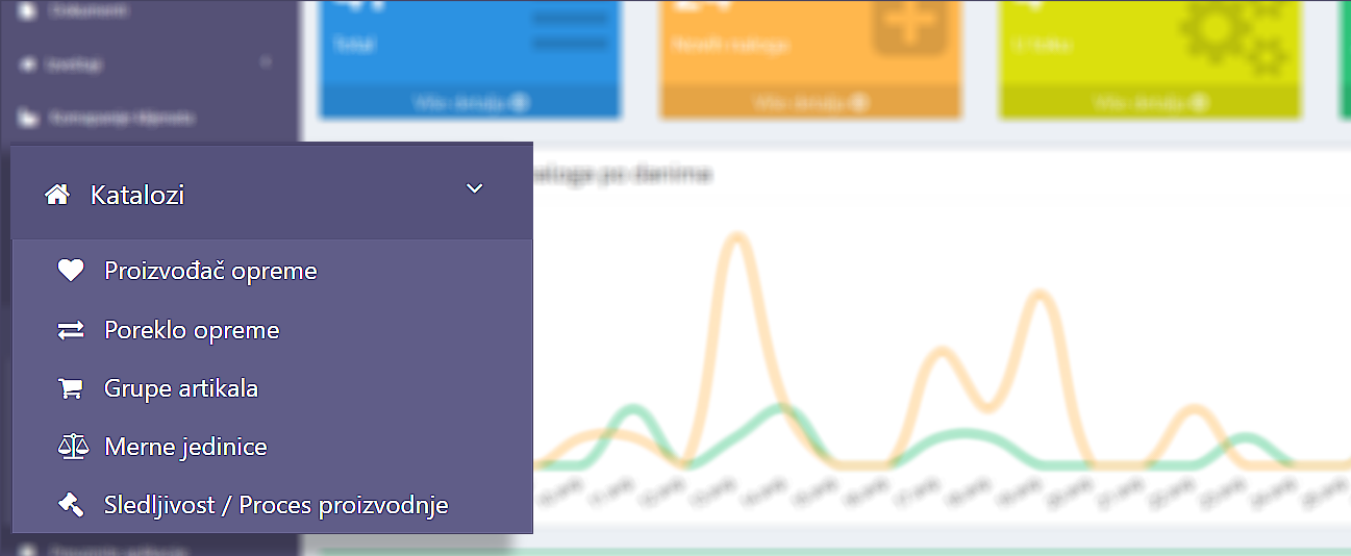 Kreiranjem kataloga, klijent definiše sve potrebne informacije vezane za artikle kojim raspolaže u okviru svog poslovanja, kao poreklo i proizvođača tih artikala odnosno opreme.