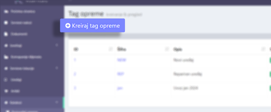- Porekla (taga) opreme - uređivanje liste tagova opreme prema potrebama klijenta.