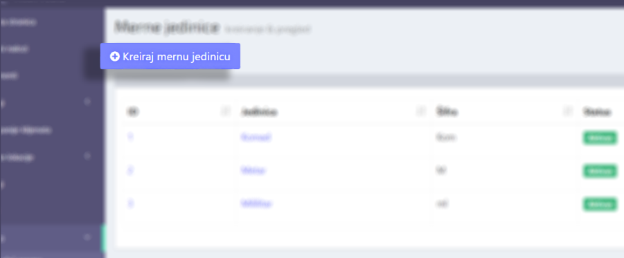 Klikom na dugme “Kreiraj mernu jedinicu” (u okviru sekcije Merne jedinice) otvara se forma za kreiranje nove merne jedinice.